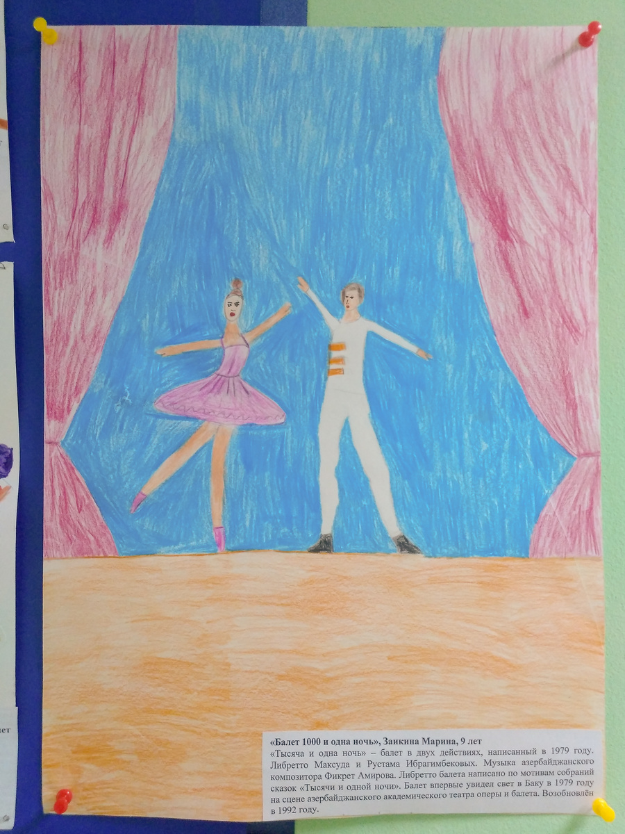 Ребята по-разному представляют театр. У каждого на рисунке получилась своя театральная жизнь. У одних детей театр ассоциируется с героями любимых спектаклей. И таких ребят большинство. Другие дети красками «рассказали» нам, какими они видят театральных актеров, не обошли ребята творческим вниманием значение театрального реквизита и жизнь закулисья. Юные художники «нарисовали» мюзиклы, балет и вальс, кукол и марионеток, «театральное» добро и зло, с которым мы все сталкивается в жизни. Для одних детей театр — это музыка души, для других — разноцветье карнавала.