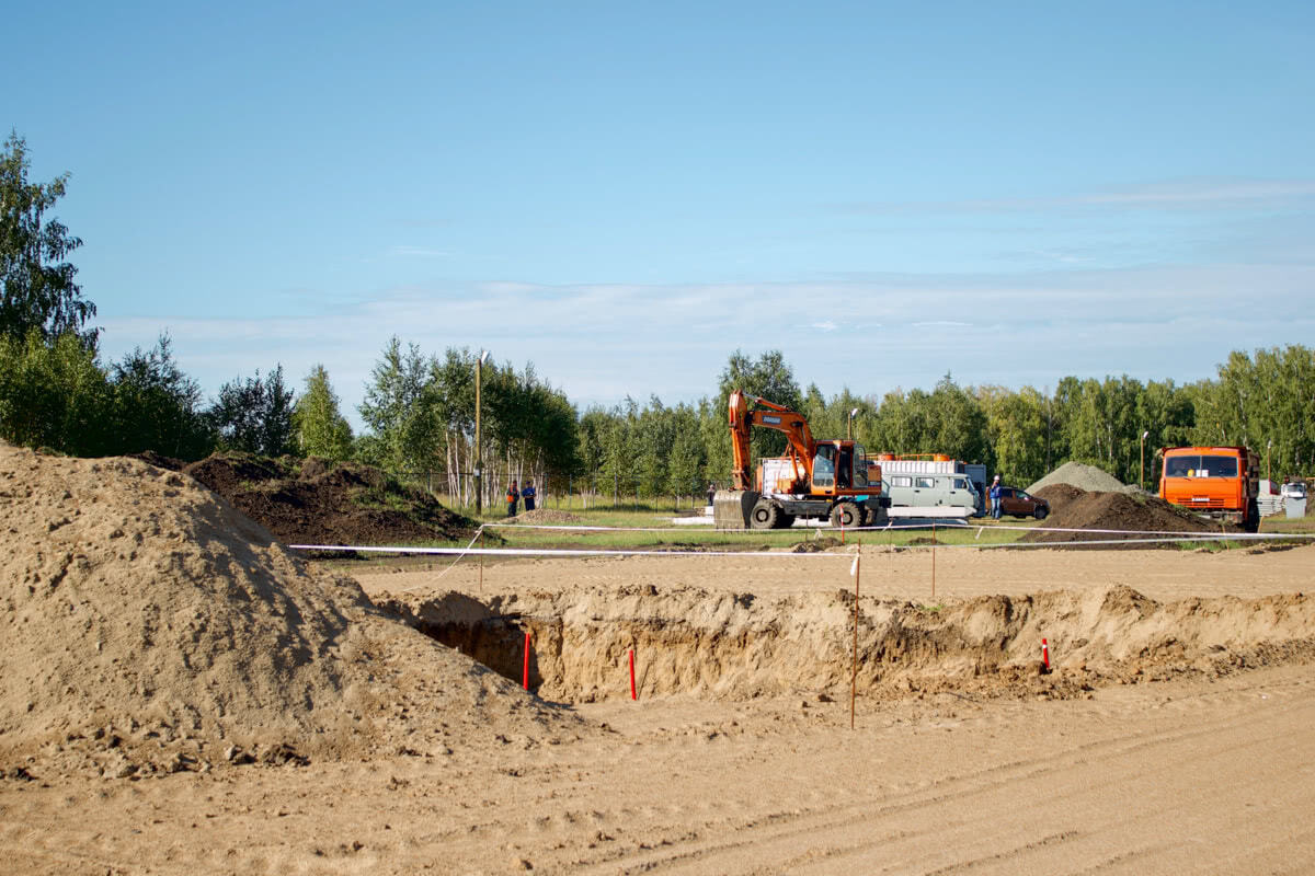 На строительной площадке уже завершён монтаж блоков ГРС, выполняется сборка антенно-мачтового сооружения и уплотнение насыпи для подъездных дорог.