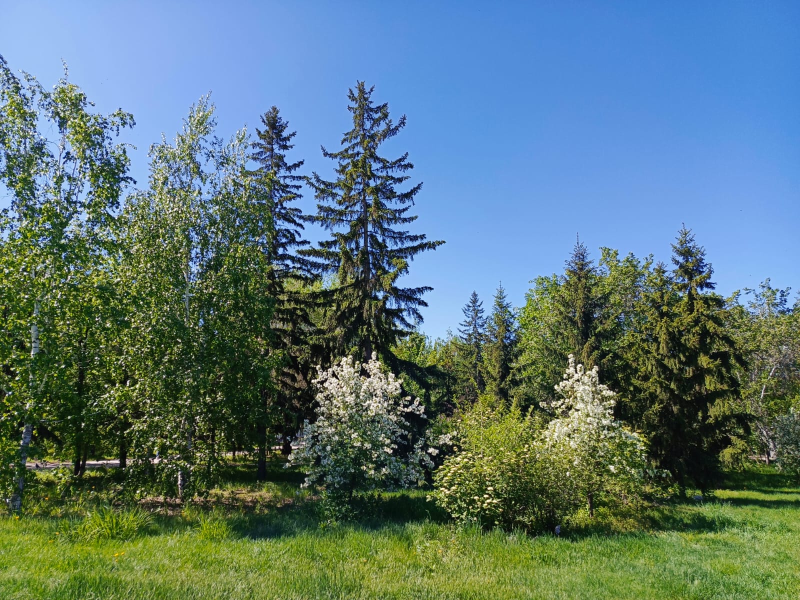 Конечно, весна в этом году холодная. Сейчас время, когда всё цветёт: яблони, сирень, одуванчики. Только как-то скромно, из-за холодов что ли – не знаю. И особо цветы не пахнут, наверное, из-за дождей. Вода и правда высокая. Пляжи, берега песчаные – в воде. Закрытую на реконструкцию набережную затопило. Особенно видно по мостам на Оми, к которым вода почти вплотную подобралась, а раньше опоры и берег было видно. Вдоль рек идешь, и холодно. Иртыш такой серебристый полноводный, и это только его часть в кадр попадает, потому что он в черте города лесистыми островами прерывается, а потом продолжается.