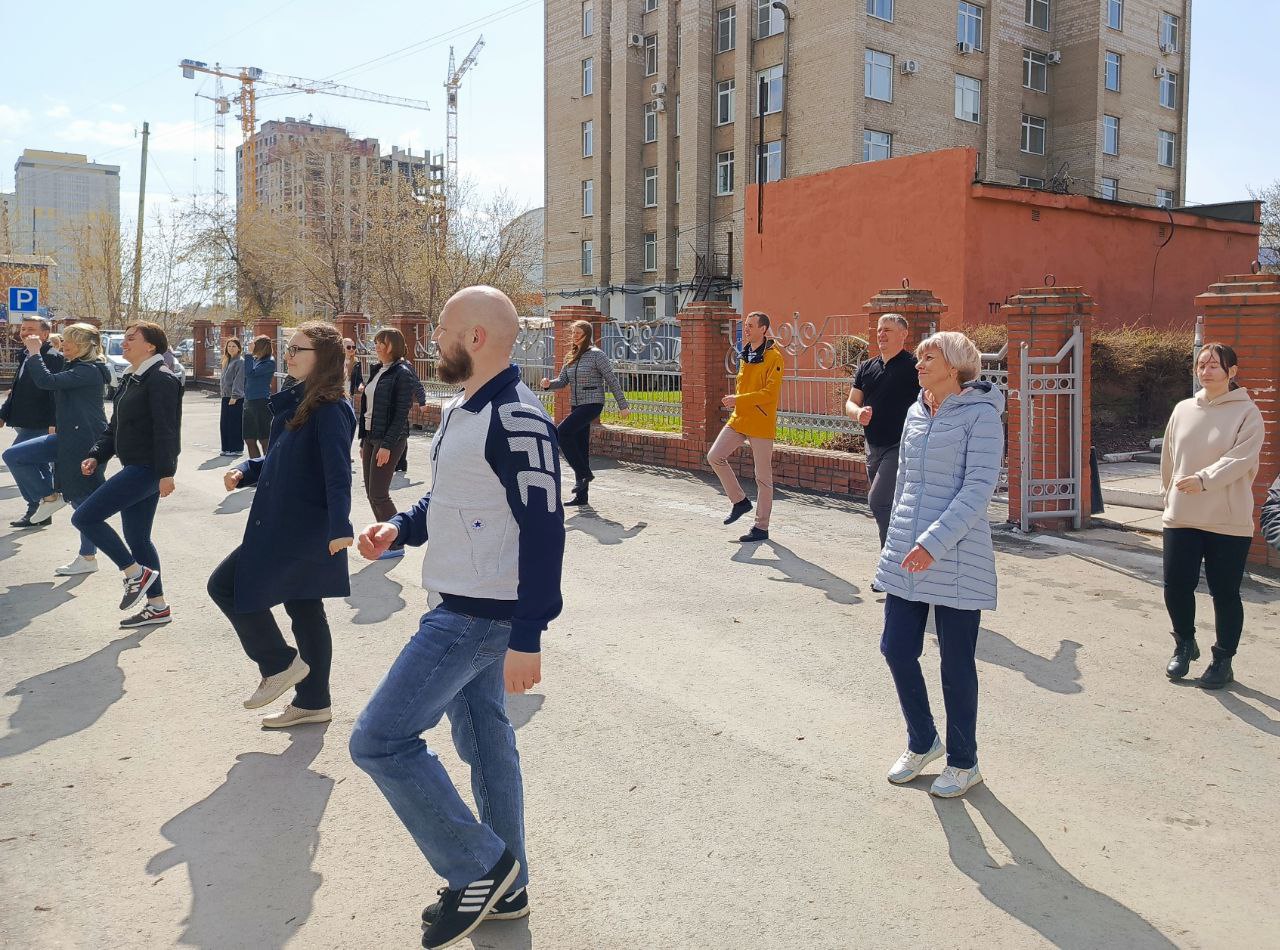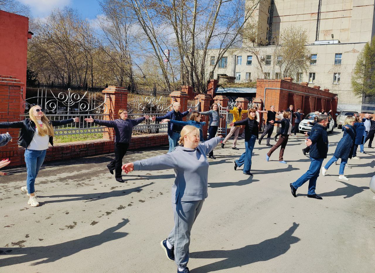 Накануне Всемирного дня охраны труда, который пройдёт 28 апреля, ребята из Молодёжного совета «Газпром межрегионгаз Омск» предложили коллегам повысить работоспособность. Как? Провели производственную гимнастику на свежем воздухе.